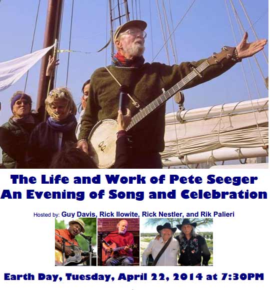 In my neck of the woods, there are a couple of events on the calendar. The New Jersey Public Policy Network will hold a tribute concert at Fairleigh Dickinson University’s Teaneck/Hackensack campus on April 17 featuring Spook Handy, Cynthia Summers and Pace Goodman. The following week, an evening of music is planned at the Turning Point in Piermont, New York. Appropriately, this concert will be held on Earth Day, April 22, beginning at 7:30pm and will feature Guy Davis, Rik Palieri, Rick Nestler and Rick Illowite. 100% of the proceeds will benefit the Clearwater.