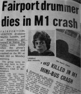 Thompson, Ashley Hutchings, Simon Nicol, and Branham suffered varying degrees of injury in the crash, which devastated the band. Simon Nicol recounts that Fairport’s female lead singer at the time, Sandy Denny, nearly had to be admitted to the hospital when she came to visit her injured bandmates, so great was her distress. Denny was the only band member not in the van at the time of the crash.