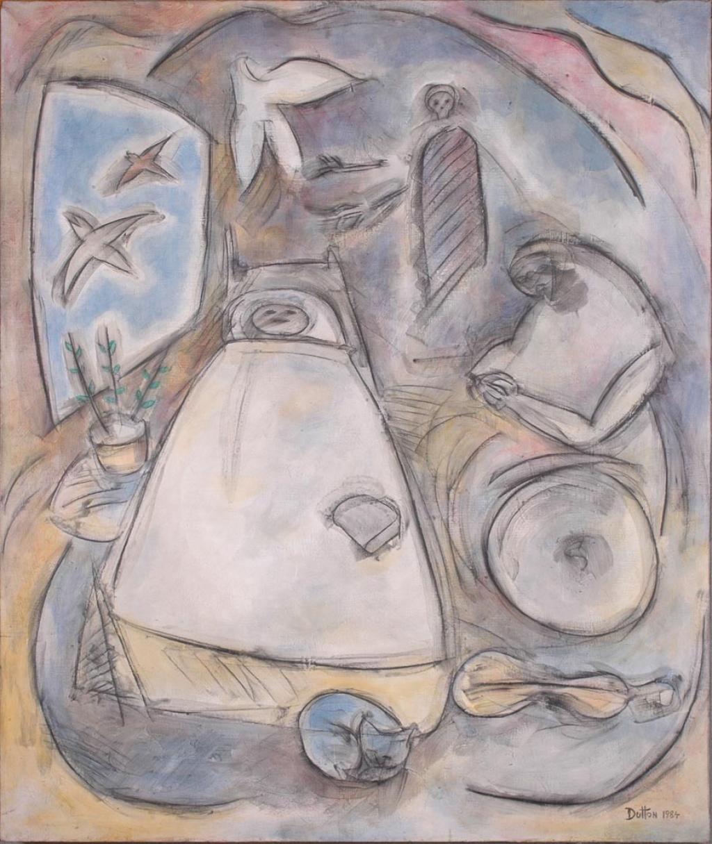 I didn’t get to visit Chappel too many times before his daughter called me and told me that he had passed away, and tearfully asked if I still had a copy of the tape I had made of him singing. They had nothing of his music, or even his voice, even though it was central to his identity, and his daughter at least was involved somewhat in music herself, running a music store catering to gospel music performers. After I promised her that I would make her a copy of the tape and hung up the phone, I had an image in my mind of a painting that would become “Death of a Ballad Singer” – based somewhat on Hieronymus Bosch’s “Death of a Miser.” In it the skeleton Death reaches for but cannot catch the bird-soul form of music flying from the dead man through an open window, into the unknown beyond.