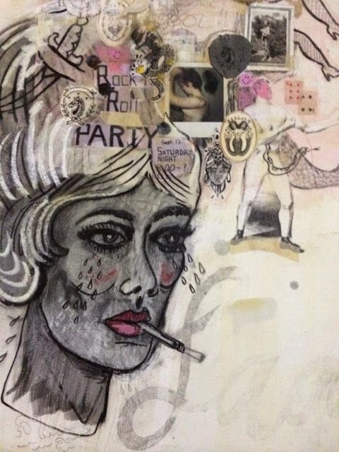 | “Down in the Willow Garden” mixed media collage on paper Ellen Greene, 2014 |
