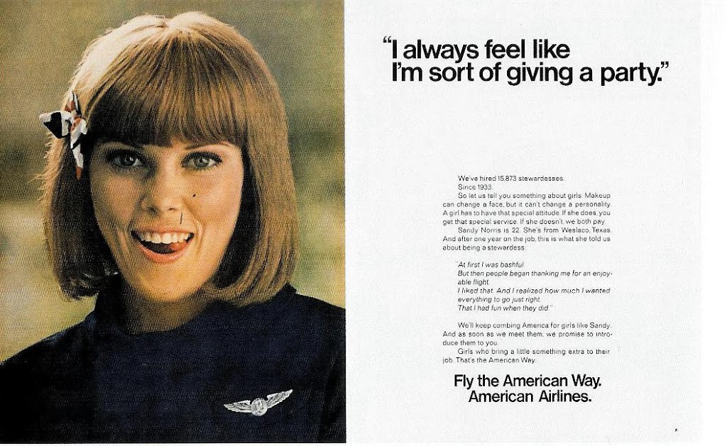 As incredible as it is, this American Airlines campaign is perhaps outdone only by the “Fly Me” campaign that National Airlines ran a few years later in the early 70s (around the time that self-cleaning ovens were also become the standard for young working-class couples like Frank and his wife):