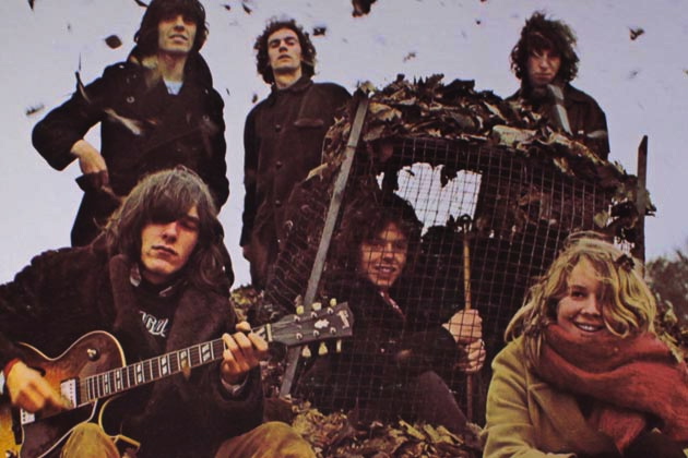 Fairport Convention in 1969 (clockwise from lower left): Simon Nicol, Iain Matthews, Ashley Hutchings, Richard Thompson, Sandy Denny, Martin Lamble
