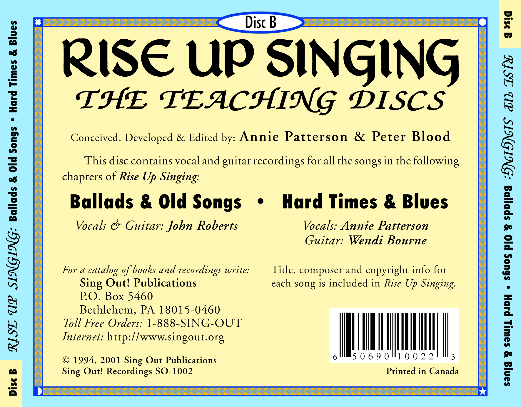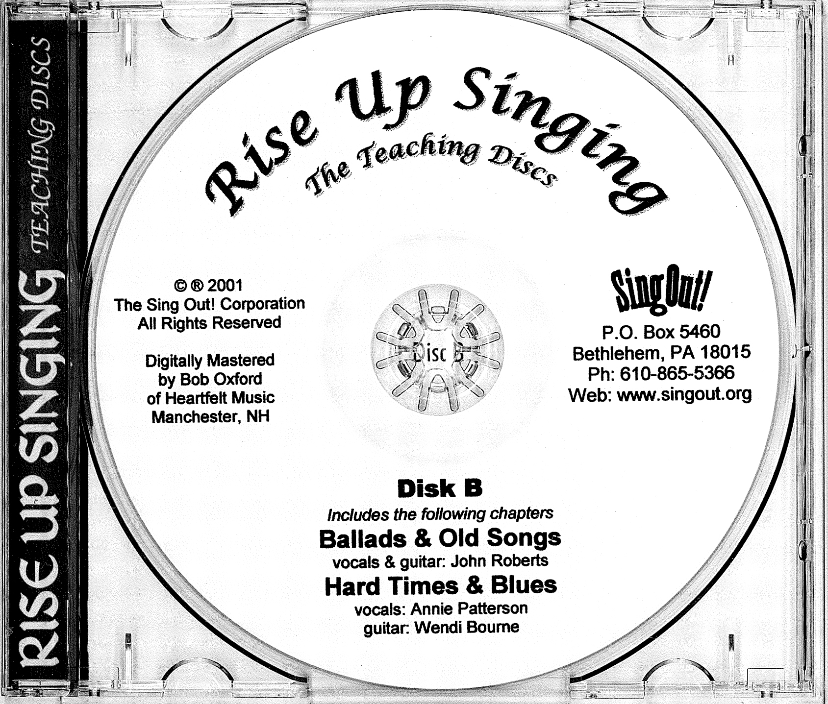 Rise Up Singing Teaching CD B include all the songs from the chapters “Ballads & Old Songs” and “Hard Times & Blues.”