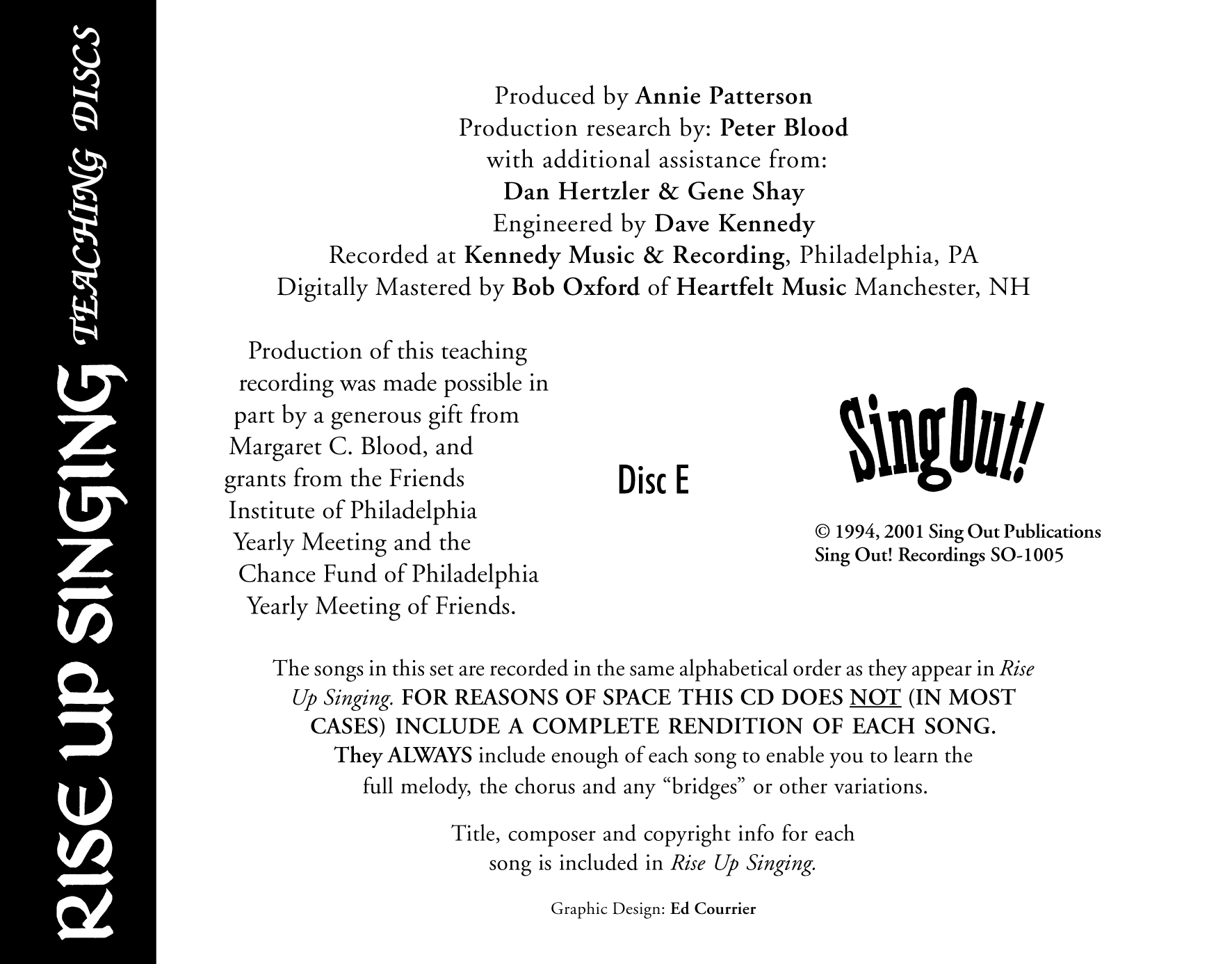 Rise Up Singing Teaching CD E include all the songs from the chapters “Ecology” and “Outdoors.”