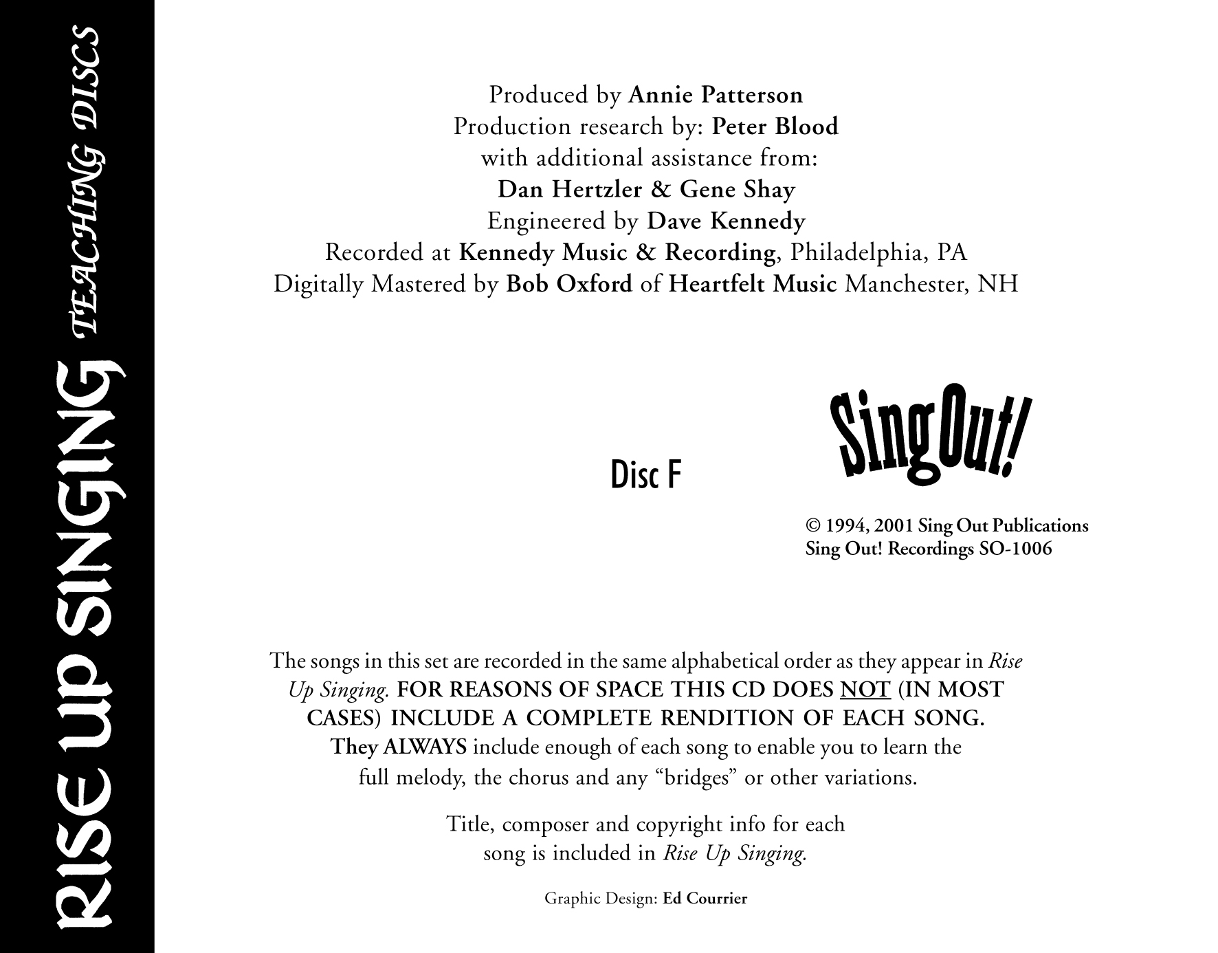 Rise Up Singing Teaching CD F include all the songs from the chapter “Faith.”