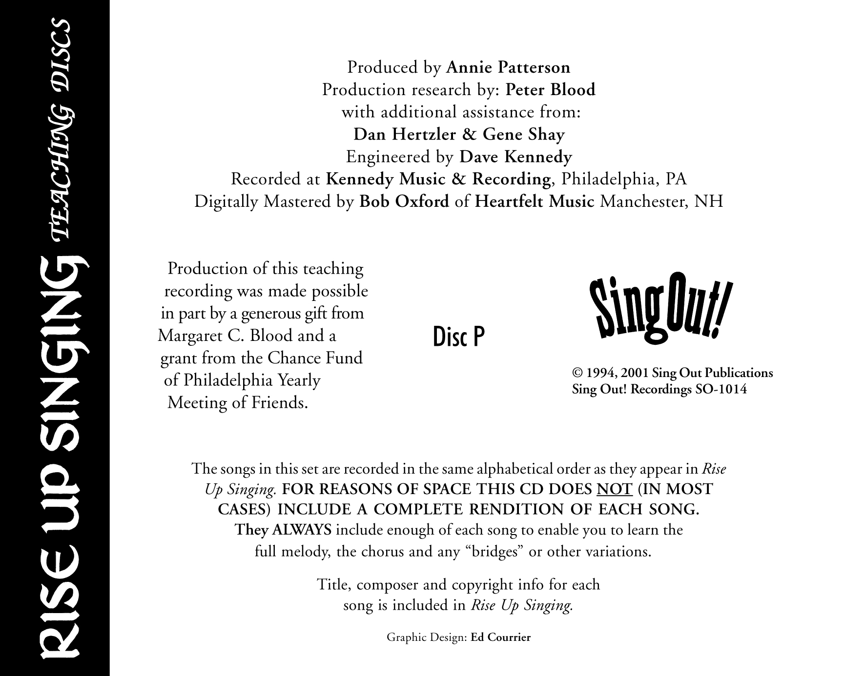 Rise Up Singing Teaching CD L include all the songs from the chapters “Creativity” and “Peace.”