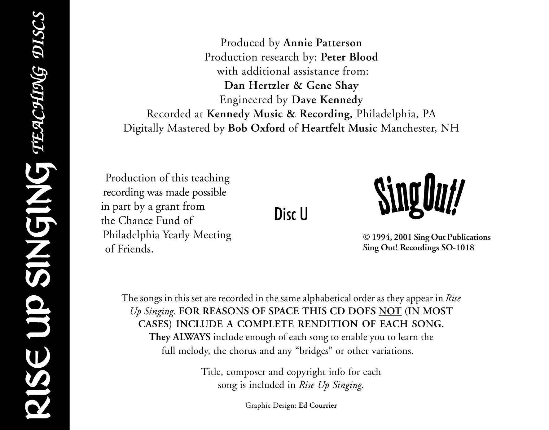 Rise Up Singing Teaching CD U include all the songs from the chapters “Unity” and “Women.”