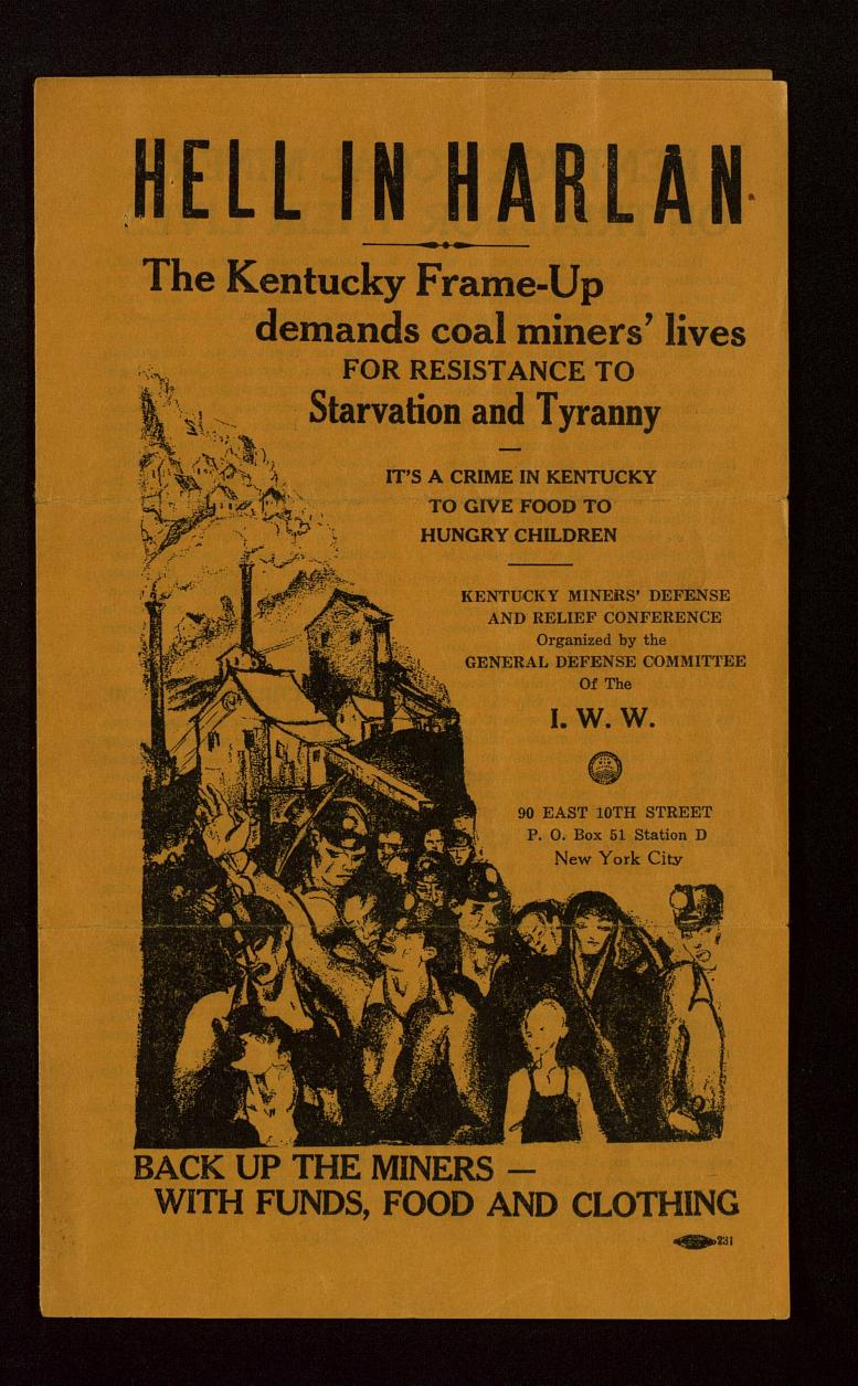 Cover of I.W.W. pamphlet in support of striking Kentucky miners, ca. 1932 (University of Kentucky Libraries)