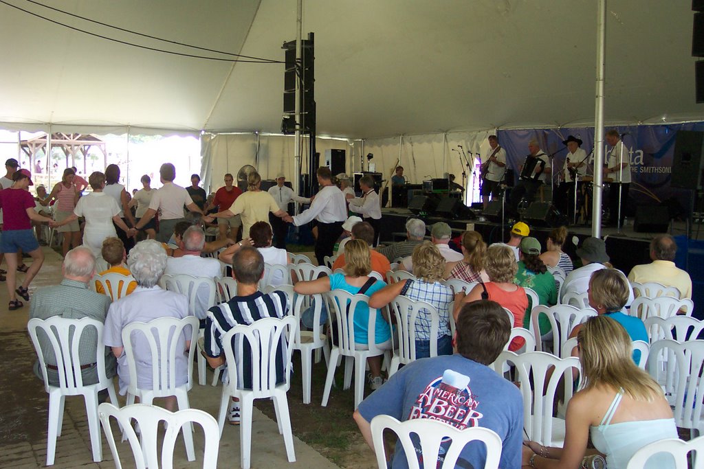 I spent most of the afternoon checking out the festival, braving the legendary Washington DC summer weather. (It wasn’t that bad!). At the Alberta “Jubilee” stage I witnessed an inspired performance from the group Zabava – Ukrainian Music and Dance. Alberta has a large Ukrainian community and the music and dance is popular in the region. I applaud all the dancers who stood up to the heat and appeared to be enjoying themselves. Also of note was a Aboriginal trio – Asani. The group formed in April 1997 and they perform original compositions in their native language. They are largely accapella, but they do use occasional drums and rattles to enhance their music.
