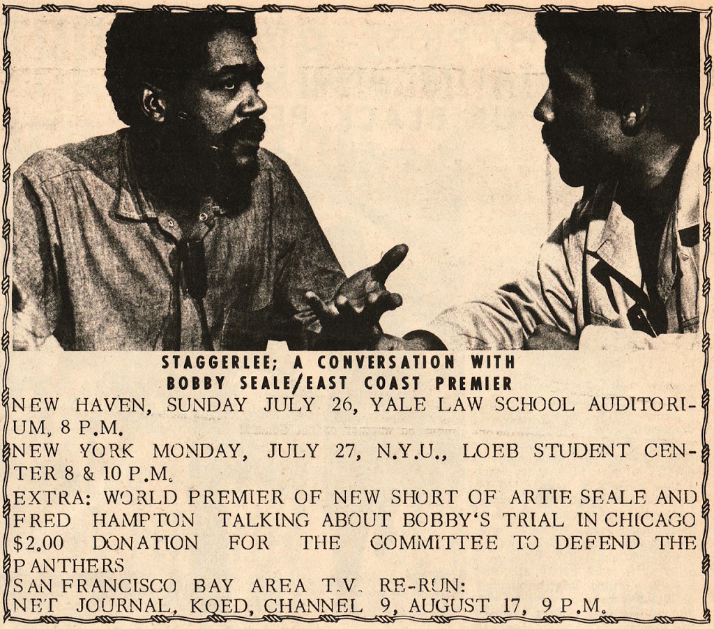 1970 Poster for a showing of Staggerlee: A Conversation with Bobby Seale