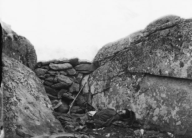 | “The Home of a Rebel Sharpshooter, Gettysburg” – Alexander Gardner, 1863 |